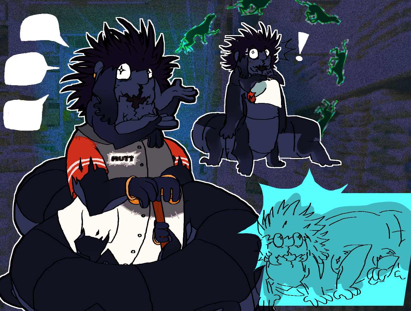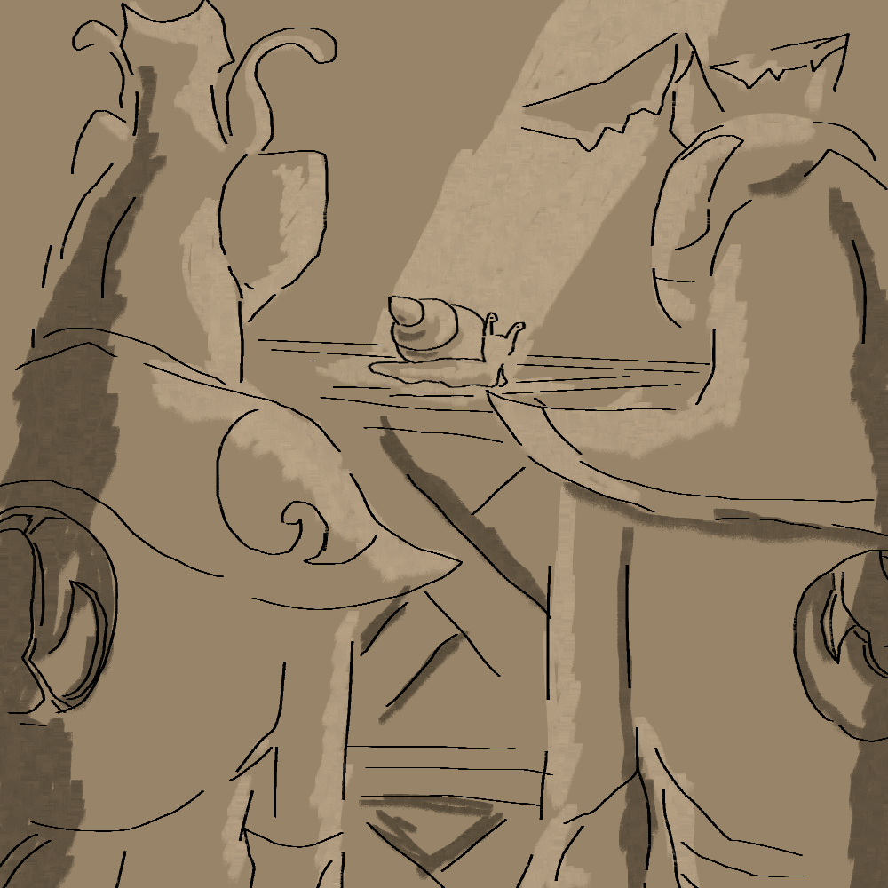 Simple, rough doodles ranging from busts to full scenes