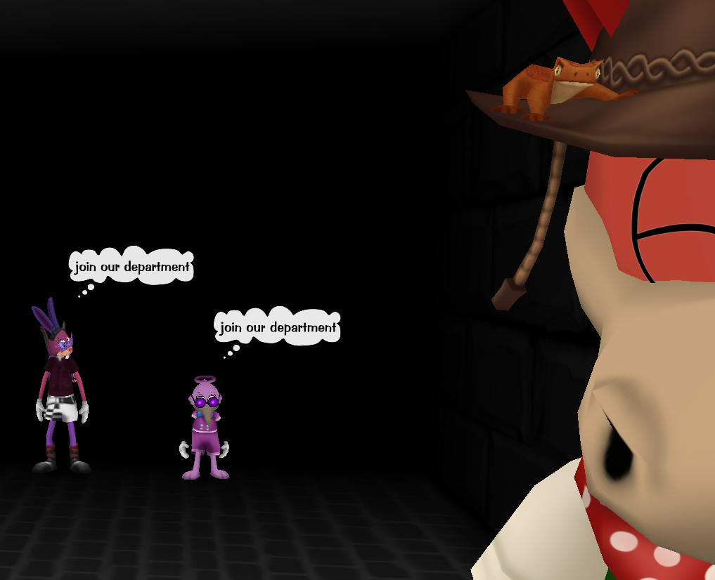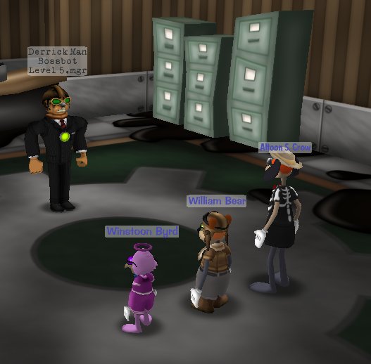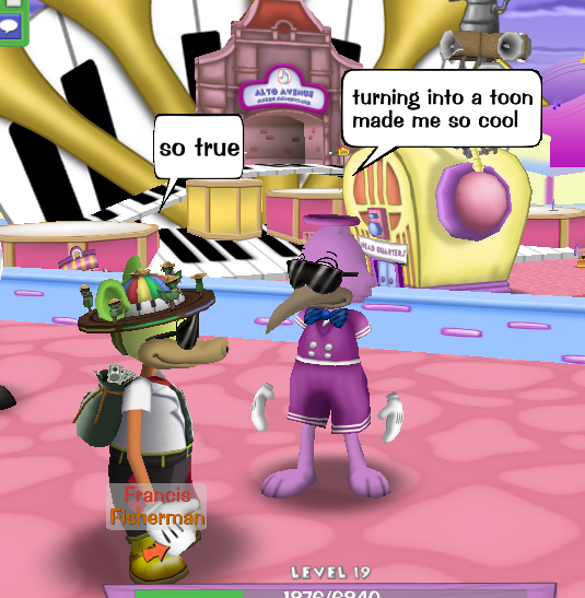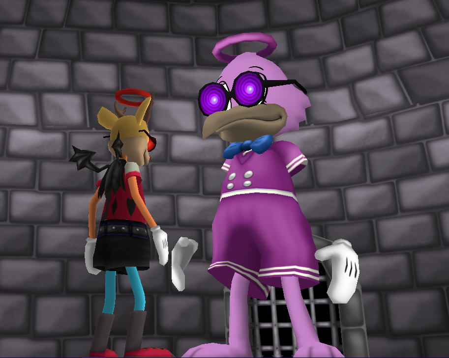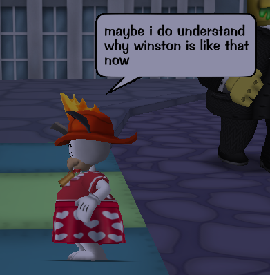 Despite that, she's still the bad guy. He's fully prepared to do whatever it takes to go back home and do her job; to aid in the takeover of toontown and driving out toons from the place. They're here to be public relations, as in, getting the toons on their side, by any means necessary.
