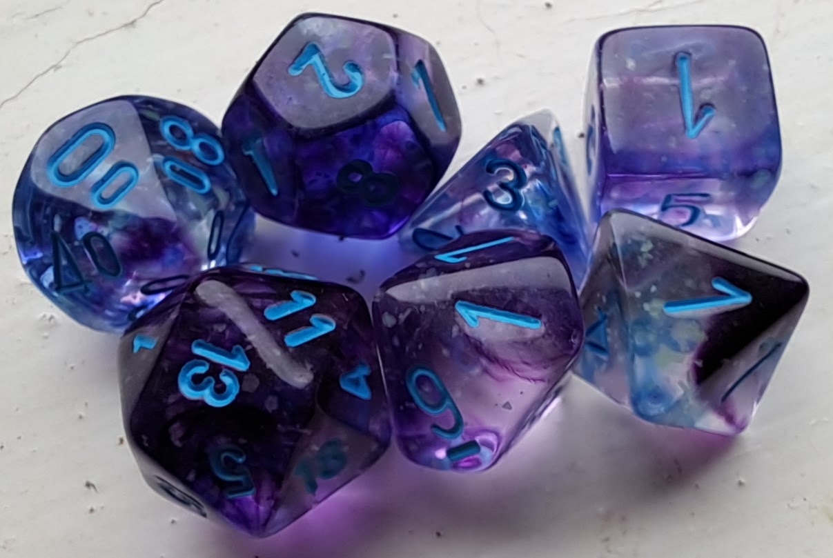 thats right.. two dice sets. i picked these up pretty much just because i saw purple/blue and went WINSTON!!!