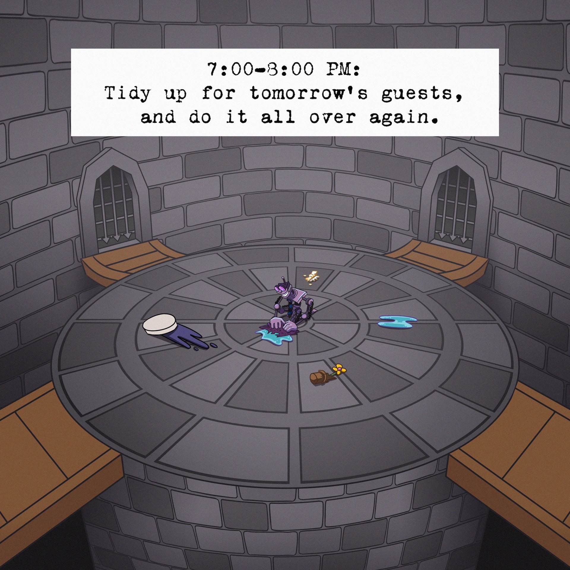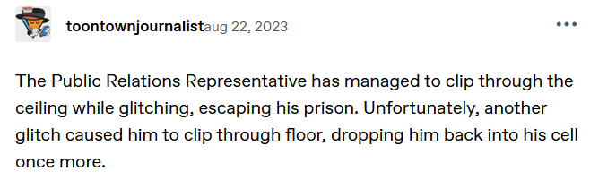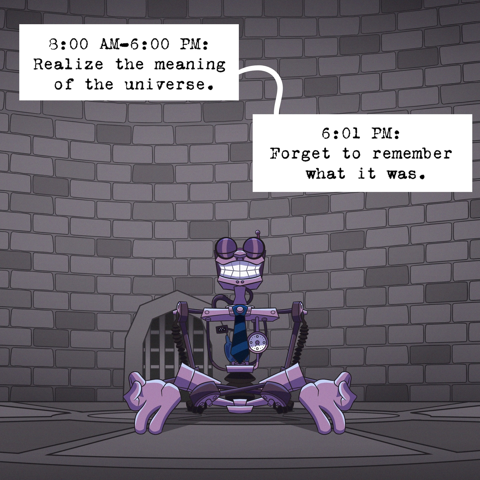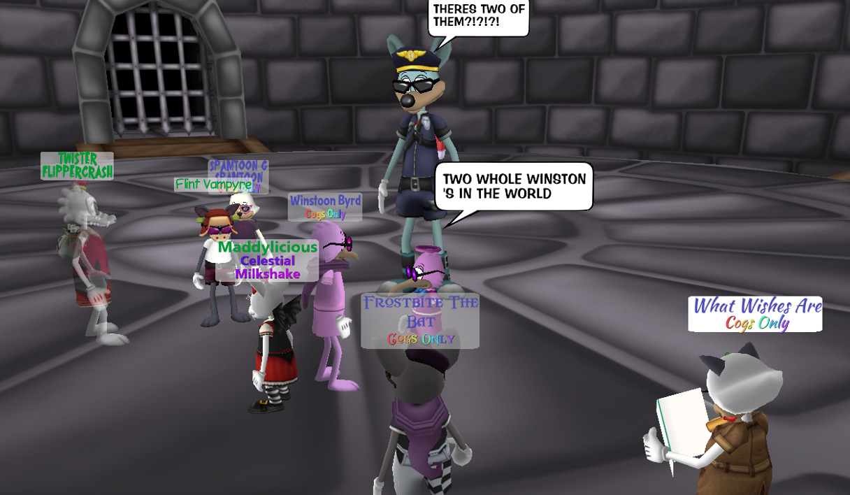 Imprisoned and forgotten, Winston waits alone in the dungeon of Ye Olde Toontown, wasting away both physically and mentally as they wait for the day COGS inc comes to save them.