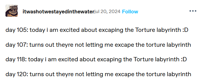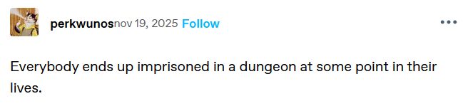 He's been waiting in that dungeon for years. And she'll keep waiting. and waiting. and waiting...
