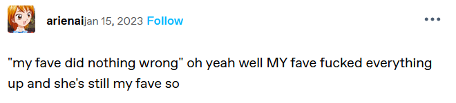 I hope she knows that someone, in some universe, cares about her. Even if she did do all that.
